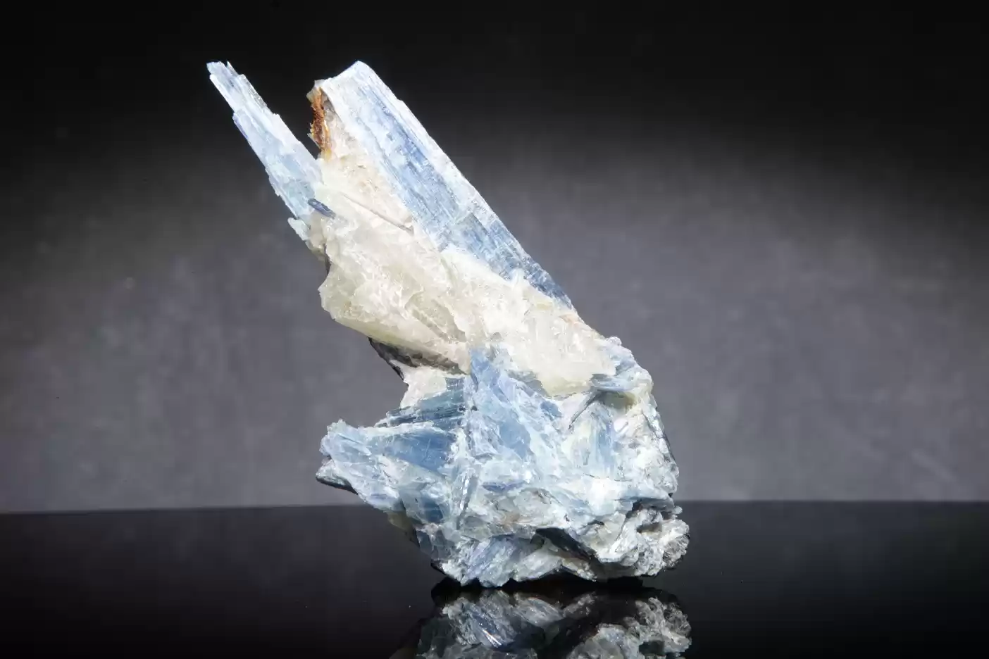 Kyanite is a typically blue silicate mineral, commonly found in aluminum rich metamorphic or sedimentary Rocks. Kyanite is a member of the alumino-silicate series, which includes the polymorphs, alusite and sillimanite, which have the same chemical composition (Al2O3.SiO2) as alusite and sillimanite but it is distinguished from those two minerals by its physical properties.
